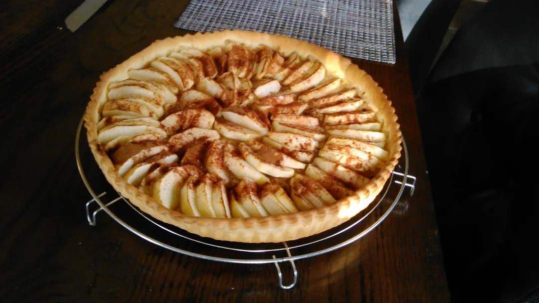 - Meng wat suiker met een mespuntje kaneelpoeder en meng door de appels.